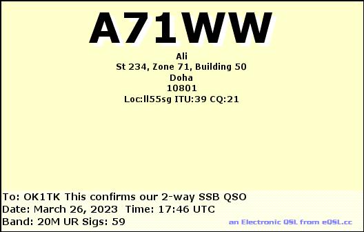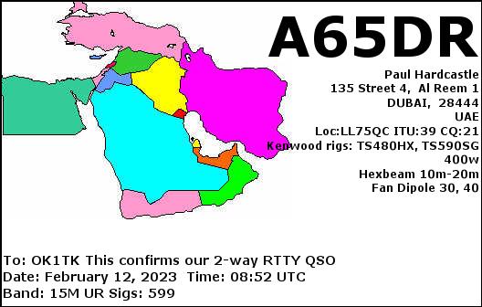 A61QQ, UNITED ARAB EMIRATES /SSB, 20mA65DR, UNITED ARAB EMIRATES /RTTY, 15mA61QQ, UNITED ARAB EMIRATES /RTTY, 10m