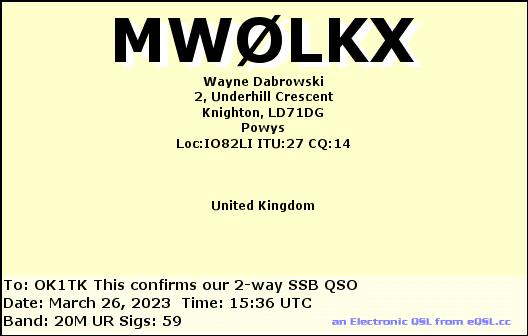 MW0LKX, UNITED KINGDOM: WALES /SSB, 20mMW9W, UNITED KINGDOM: WALES /RTTY, 15mMW0LKX, UNITED KINGDOM: WALES /SSB, 20mMW9W, UNITED KINGDOM: WALES /RTTY, 20m
