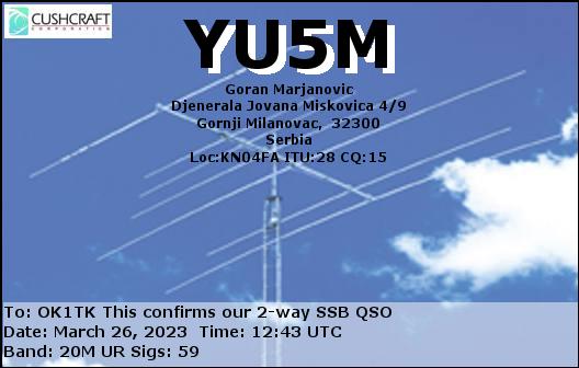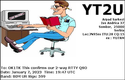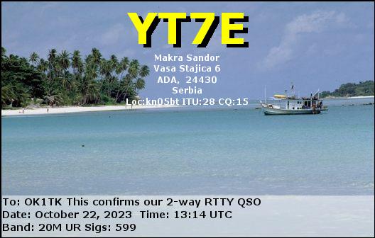 YT2U, SERBIA /RTTY, 80mYT7E, SERBIA /RTTY, 20mYU5M, SERBIA /SSB, 20mYT7E, SERBIA /RTTY, 20mYU5M, SERBIA /SSB, 20m