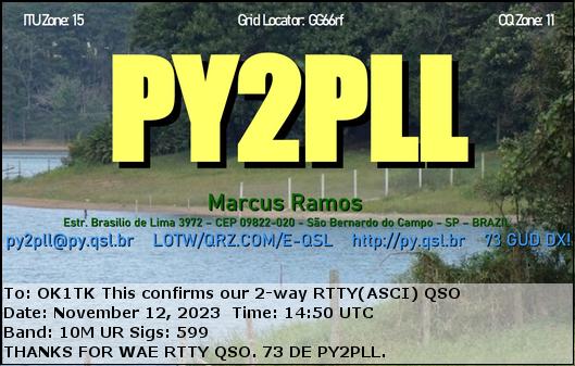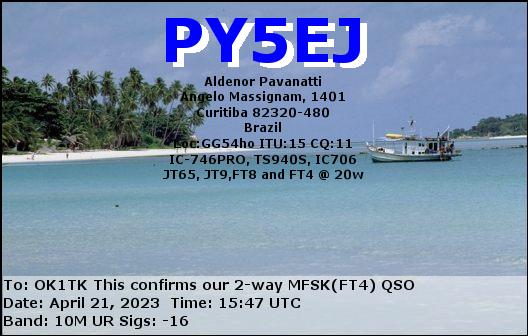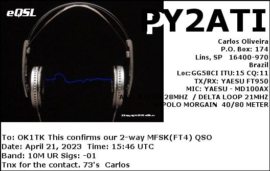 PS2F, BRAZIL /SSB, 10mPY2ATI, BRAZIL /MFSK(FT4), 10mPY2PLL, BRAZIL /RTTY, 10mPY5EJ, BRAZIL /MFSK(FT4), 10mPY5XT, BRAZIL /FT8, 15m