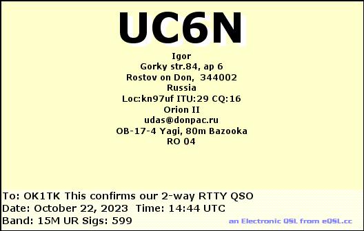 R3GZ, RUSSIA /RTTY, 15mR4FDD, RUSSIA /FT8, 10mRA4L, RUSSIA /RTTY, 15mRA4L, RUSSIA /RTTY, 20mRA6LIS, RUSSIA /RTTY, 20mRA9AU, RUSSIA /RTTY, 20mRG2Y, RUSSIA /RTTY, 20mRM3DA, RUSSIA /RTTY, 15mRT5C, RUSSIA /RTTY, 40mUC6N, RUSSIA /RTTY, 15mUC6N, RUSSIA /RTTY, 15m